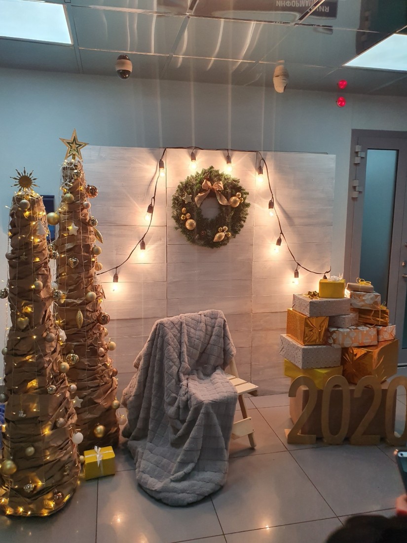 Изготовили и украсили новогоднюю фотозону на корпоративе одного из филиала компании Газпром в Ярославле от студии Decor club.